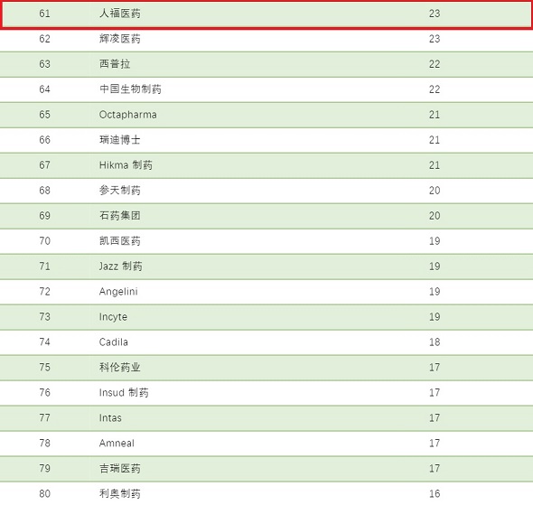 根据医药咨询公司 Novasecta 的一份全球制药公司 100 强榜单,星空·综合体育集团荣膺全球制药公司100强第61位,该榜单按照制药企业2018年集团总收入(包括制药业务外收入)进行排名。