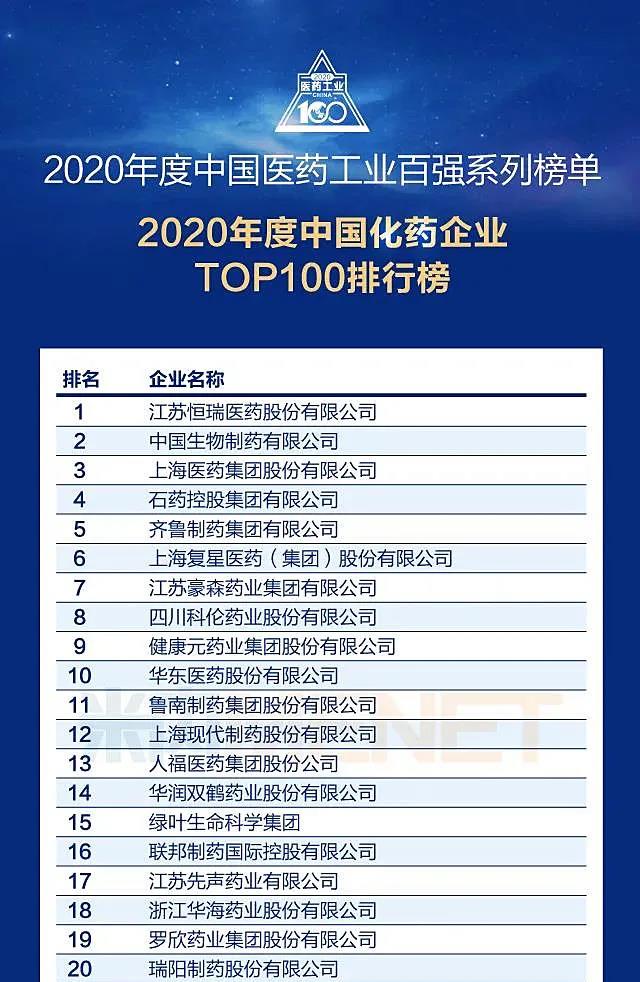 7月21日,在米内网2021年米思会现场,2020年度中国医药工业百强系列榜单正式发布。百强系列榜单分为“中国化药企业TOP100排行榜”“中国中药企业TOP100排行榜”等5大子榜,星空·综合体育集团位列中国化药企业TOP100排行榜第13位。