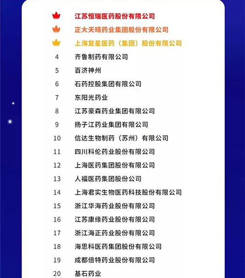 9月18日,2021中国药品研发实力排行榜系列榜单在“2021大健康产业高质量发展大会暨第六届中国医药研发·创新峰会(PDI)”隆重揭晓。星空·综合体育集团位列2021中国药品研发综合实力排行榜TOP100第13位。