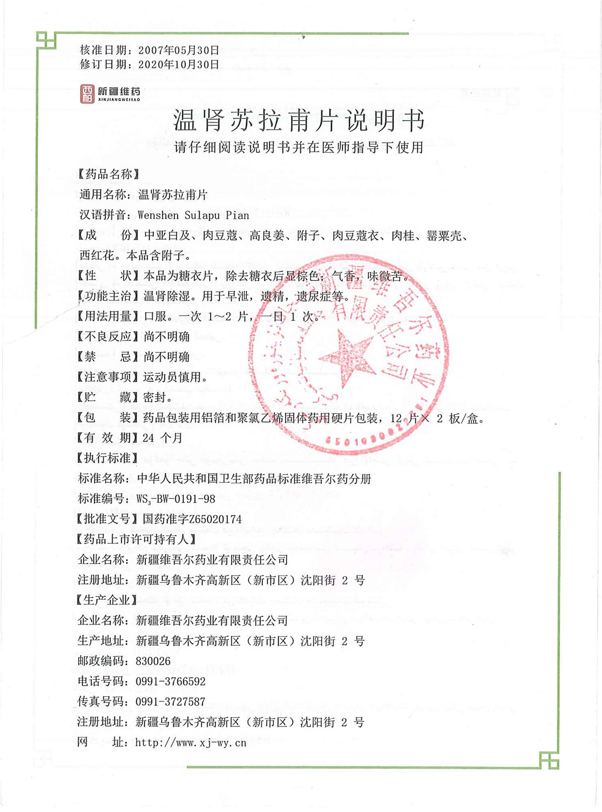 温肾苏拉甫片