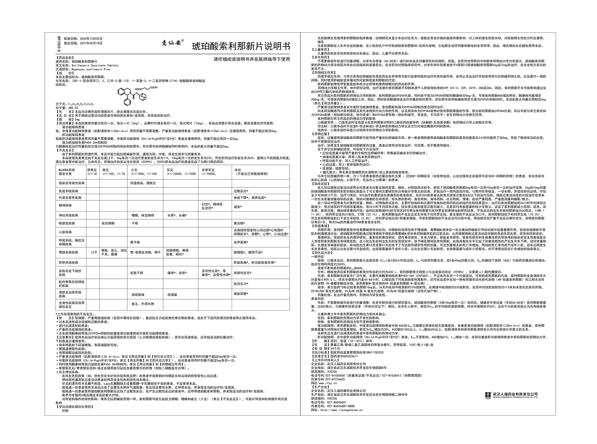 意仙安®琥珀酸索利那新片